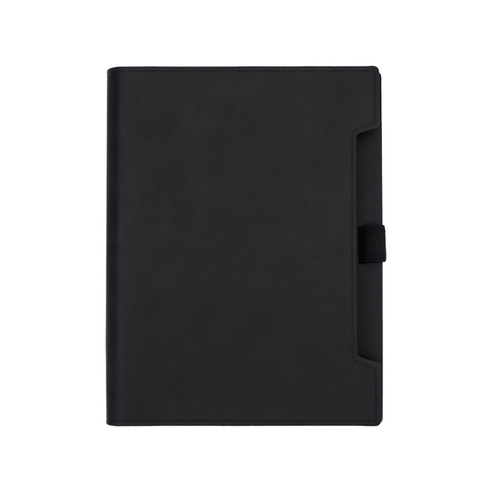 Organizér v pevné vazbě s vyměnitelným zápisníkem A5 se 120 čtverečkovanými stranami (70 g/m2). Organizér obsahuje jednu velkou přihrádku, 3 menší kapsy a držák na pero.