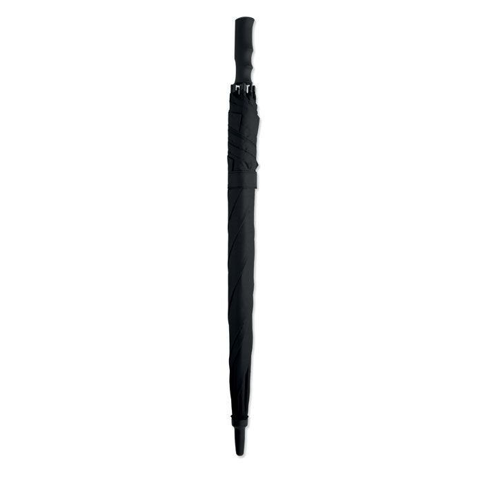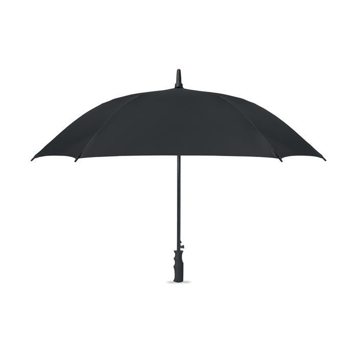 23palcový větruodolný čtvercový deštník s automatickým otevíráním z polyesteru 190T pongee. Tyč a žebra ze sklolaminátu a rukojeť z ABS s gumovou povrchovou úpravou.