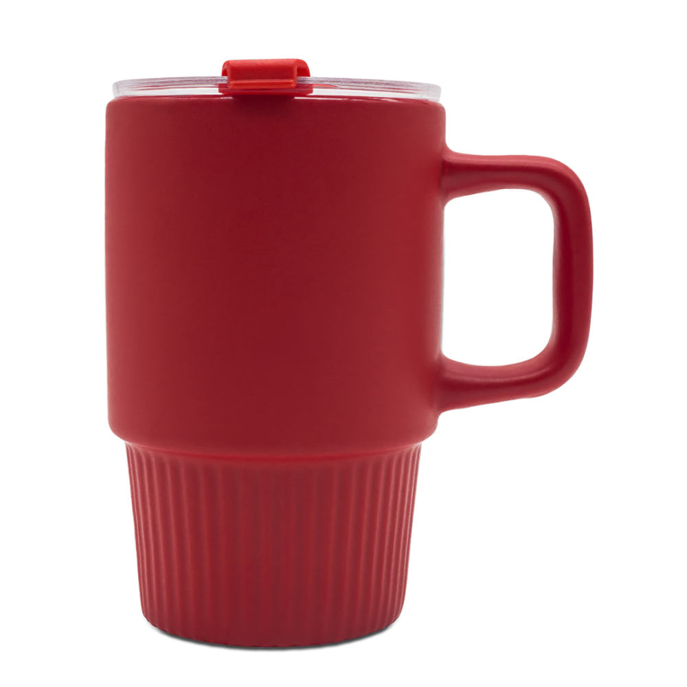 Keramický hrnek o objemu 440 ml s matným povrchem a průhledným víčkem z plastu. Jen ruční mytí.