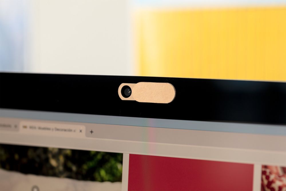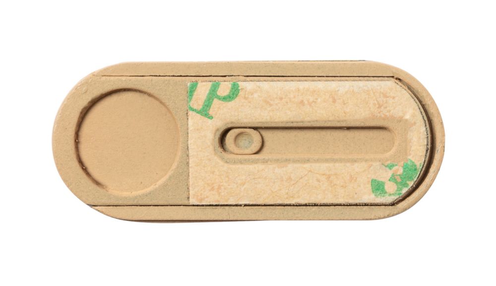 Krytka na web kameru z recyklovaného papiera a plastu, s posuvným krytom a lepiacou zadnou stranou.