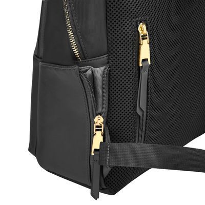 The Olympe Backpack is a minimalist piece elevated by a refined softness, crafted in contrasting nylon and high-quality vegan leather kept tone-on-tone for a clean, understated aesthetic. Its luxurious gold signature and accents stand out against the sleek silhouette, while smart functionality comes through a front zipped compartment, a spacious main section with multiple pockets—including a secure zipped one—and two highly practical side pockets. Designed for comfortable daily use, it features a padded back panel with a discreet zipped compartment for valuables, along with padded shoulder straps. Available in a beautiful palette of black, beige, and grey.
