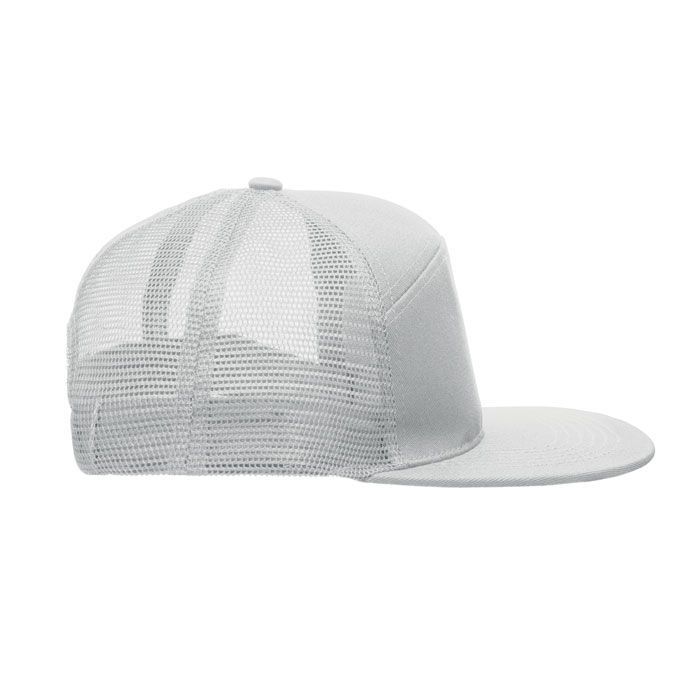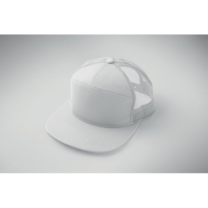Sedmipanelová kšiltovka s plochým kšiltem z bavlněného 235g kepru s polyesterovou síťovinou na zadní straně a plastovým zapínáním.