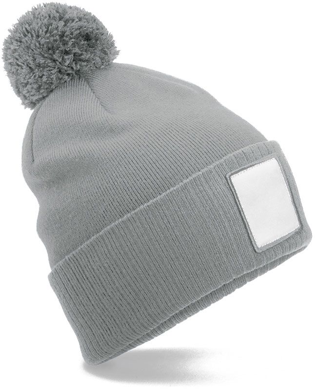 Beechfield | Pletená čepice Patch "Pompon" ash/white onesize