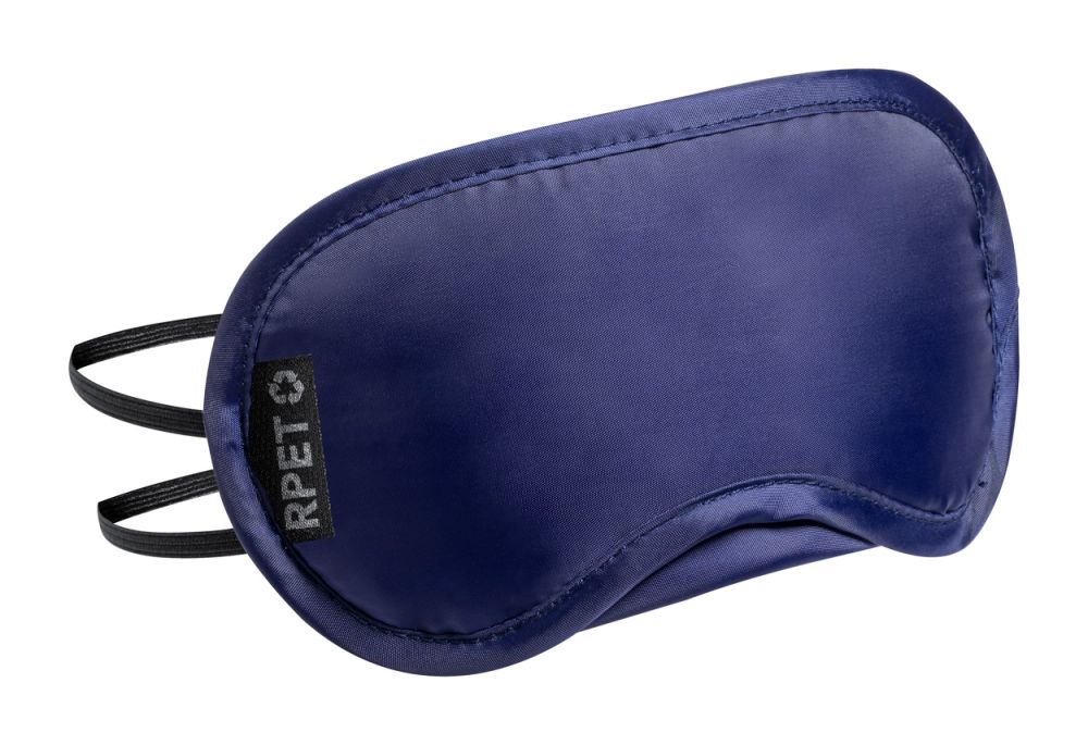 RPET polyesterová cestovná maska na oči s gumovými pásikmi. S výrazným štítkom RPET.