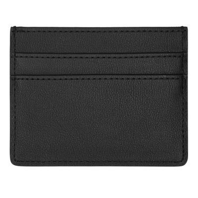 Introducing the "Block" black card holder from CERRUTI, crafted in PU (vegan leather) and priced affordably for entry-level luxury. This sleek accessory boasts modern aesthetics with an all-black design featuring an oversized, subtly embossed logo. The card holder showcases a sophisticated interplay of textures, seamlessly blending smooth and grid-patterned textures. Elevate your essentials with the "Block" card holder, a stylish fusion of contemporary design and practical functionality.