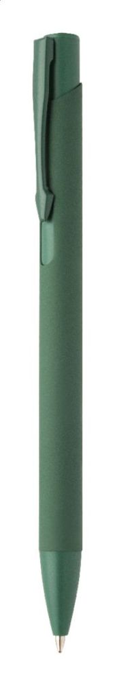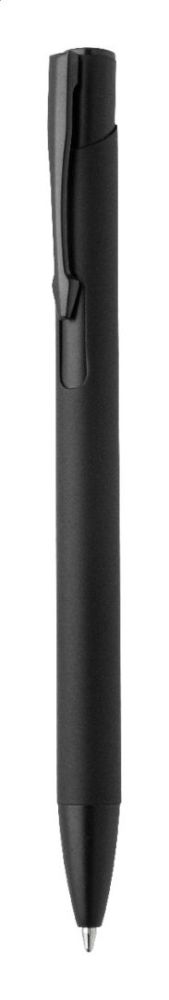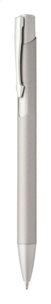 Guľôčkové pero z recyklovaného hliníka s pogumovaným telom a farebnými lesklými kovovými dielmi. So špeciálnym povrchom na zrkadlové gravírovanie, ktoré zodpovedá kovovým častiam. S modrou náplňou.