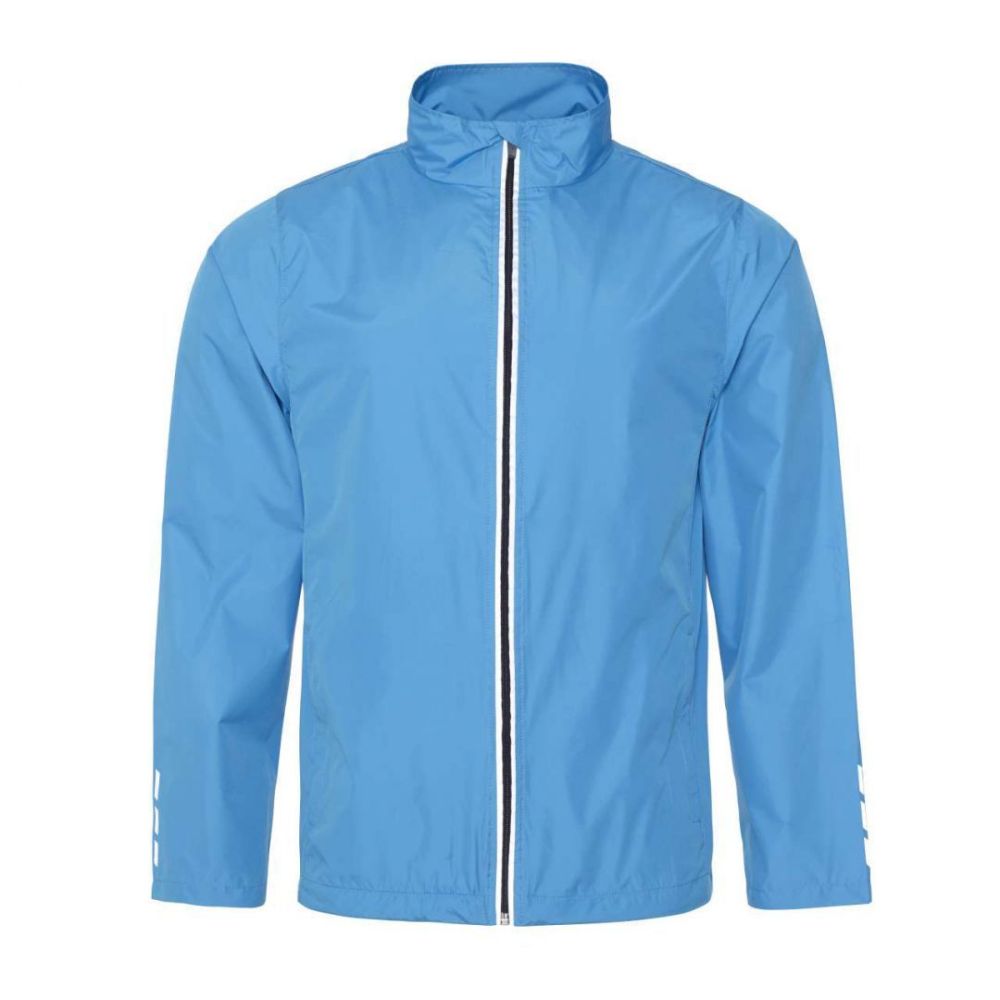 100% Polyester 330T Pongee;Lightweight comfort fit;Unisex fit;Showerproof;Windproof;Reflective front zip with chin protector;Reflective print detail at back neck and sleeve cuffs;Two front zip pockets;Curved drop tail for additional comfort;Adjustable toggle hem;Ideal for running and cycling;Internal small hidden opening for ear phone cord feed;