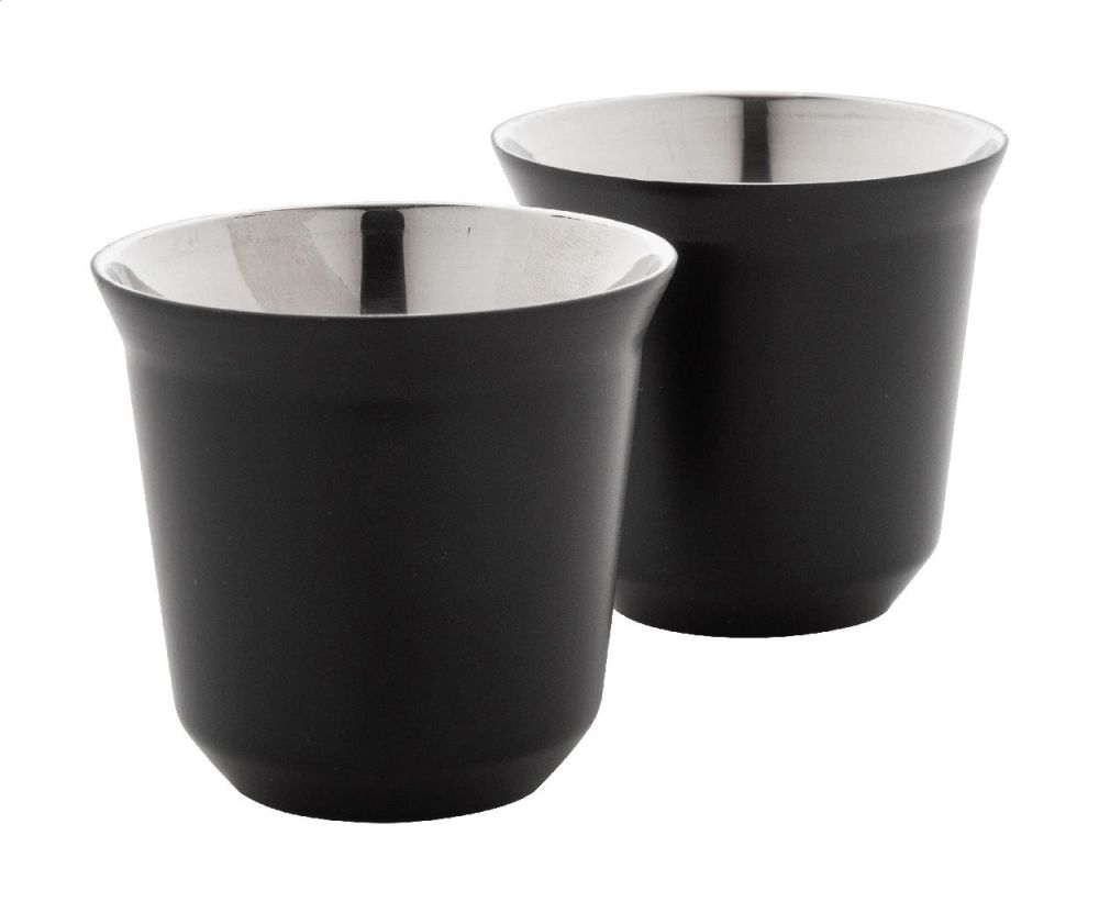 Sada 2 dvojstenných termohrnčekov na espresso v tvare kávových kapsúl z recyklovanej nerezovej ocele, 80 ml. V krabičke z kraftového papiera.