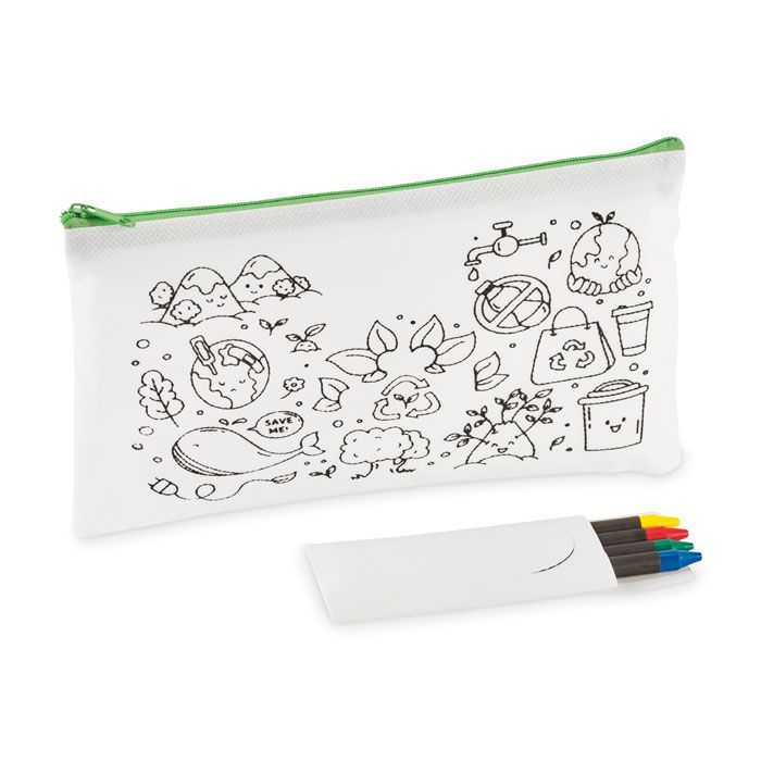 Penál z netkané textilie včetně 4 pastelek.