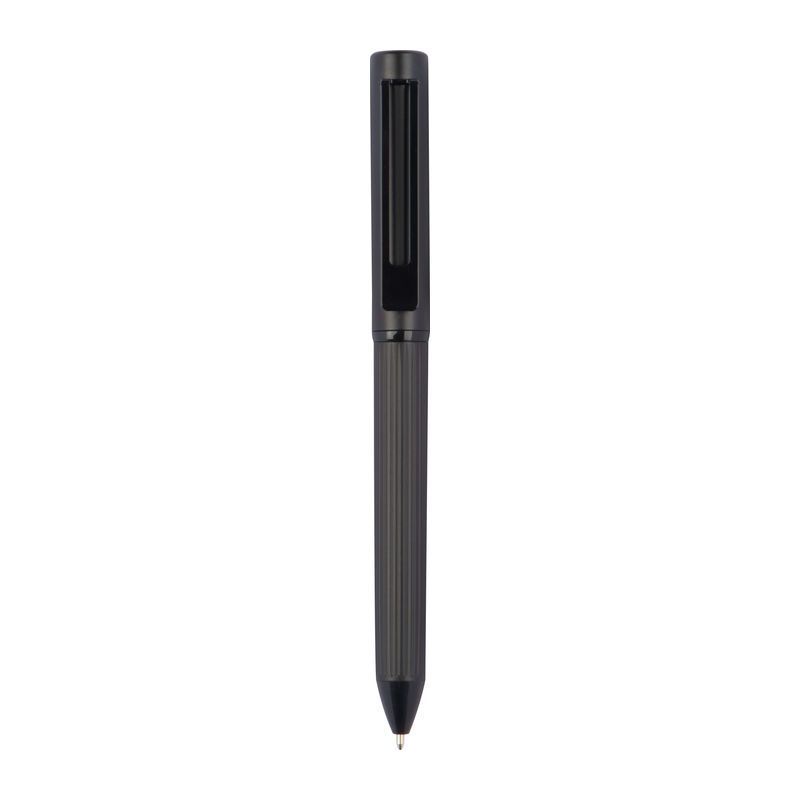 Vysokokvalitná darčeková sada pozostávajúca z kovového guľôčkového pera s modrou náplňou a zápisníka A5 s mäkkou obálkou a 128 linajkovanými stranami vyrobenými z recyklovaného papiera. Balené v čiernej darčekovej krabičke s magnetickým uzáverom.