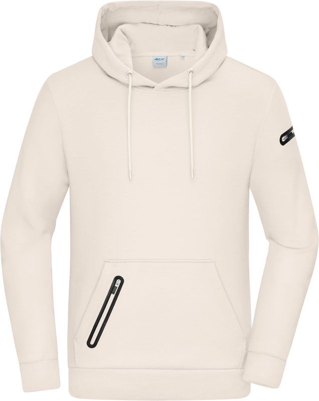 Podšitá kapuce se šňůrkou, klokaní kapsa s další kapsou na zip, kapsa na zip na levém rukávu, pratelné na 30°, šetrné praní, nelze sušit v sušičce