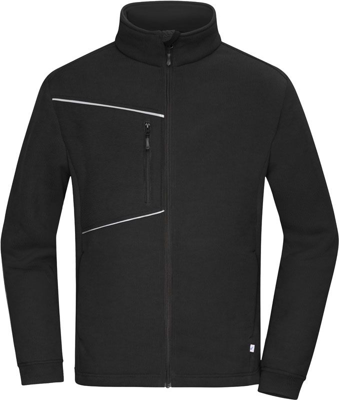 Texturovaná měkká vnější tkanina manšestrového vzhledu, odpuzující vodu a nečistoty díky BIONIC-FINISH®ECO, stojáček, manžety a pas z vnější tkaniny, YKK zipy, náprsní kapsa s kroucenou nití a zipem, hřejivá plyšová podšívka, reflexní prvky (bez ochranné funkce) vpředu a vzadu, pratelné na 30°, šetrné praní, nelze sušit v sušičce
