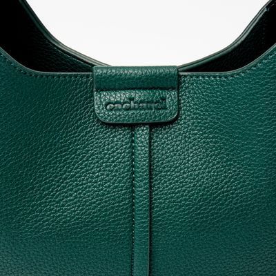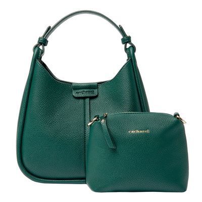 The "Astrid" bag from Cacharel exemplifies a functional, stylish, and minimal design. Made of beautifully grained vegan leather with a matte finish for a luxurious feel, it serves as a 3-in-1 product. The shoulder bag includes a cosmetic bag that can be kept inside for organization, used separately as a cosmetic pouch, or transformed into its own strap bag with an extra shoulder strap provided. The simple and minimal signatures feature a logo embossed on a tag for the main bag and a golden logo on the inside pouch. Ideal for those who prefer a clean aesthetic without excessive metal, the Astrid bag is offered in a neutral color palette of Black, Taupe, and Dark Green.