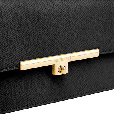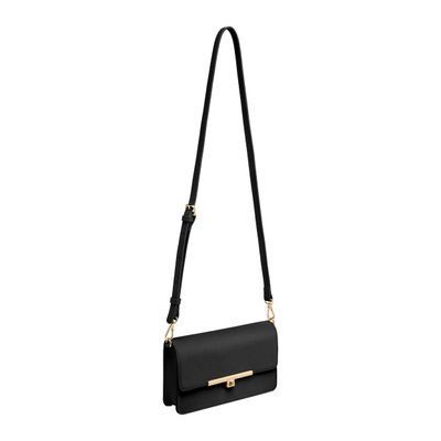 The Seraphine crossbody bag embodies refined elegance through its minimal, contemporary design. Crafted from saffiano-textured vegan leather, it is signed with an exclusive gold turn-lock closure engraved with the Cacharel logo, conveying a sense of luxurious simplicity. All gold trims bring a feminine and refined accent, while the discreet gold TPU logo on the back adds a subtle signature touch. Delivered with an adjustable and removable strap, the bag can be worn as a clutch, shoulder, or crossbody style. Its interior features a zipped compartment, offering both practicality and sophistication. Available in taupe, light grey, and black.