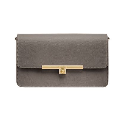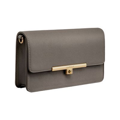 The Seraphine crossbody bag embodies refined elegance through its minimal, contemporary design. Crafted from saffiano-textured vegan leather, it is signed with an exclusive gold turn-lock closure engraved with the Cacharel logo, conveying a sense of luxurious simplicity. All gold trims bring a feminine and refined accent, while the discreet gold TPU logo on the back adds a subtle signature touch. Delivered with an adjustable and removable strap, the bag can be worn as a clutch, shoulder, or crossbody style. Its interior features a zipped compartment, offering both practicality and sophistication. Available in taupe, light grey, and black.