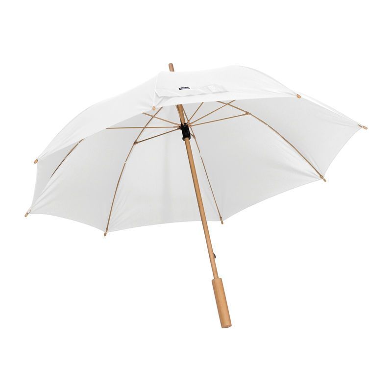 Manuálne otvárateľný dáždnik s bambusovým rámom a strieškou z RPET.