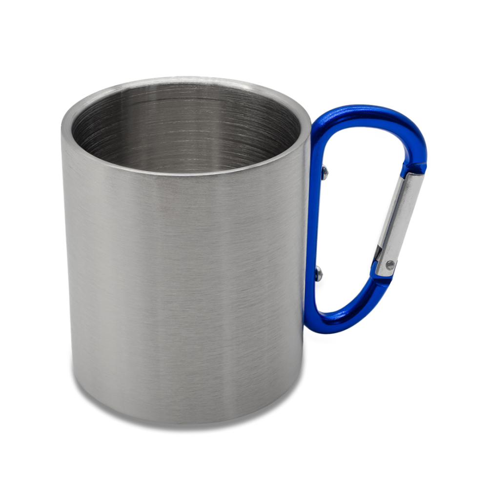 Hrnek o objemu 220 ml z nerezové oceli s dvojitou stěnou a praktickou karabinou jako ucho hrnku. Jen ruční mytí.