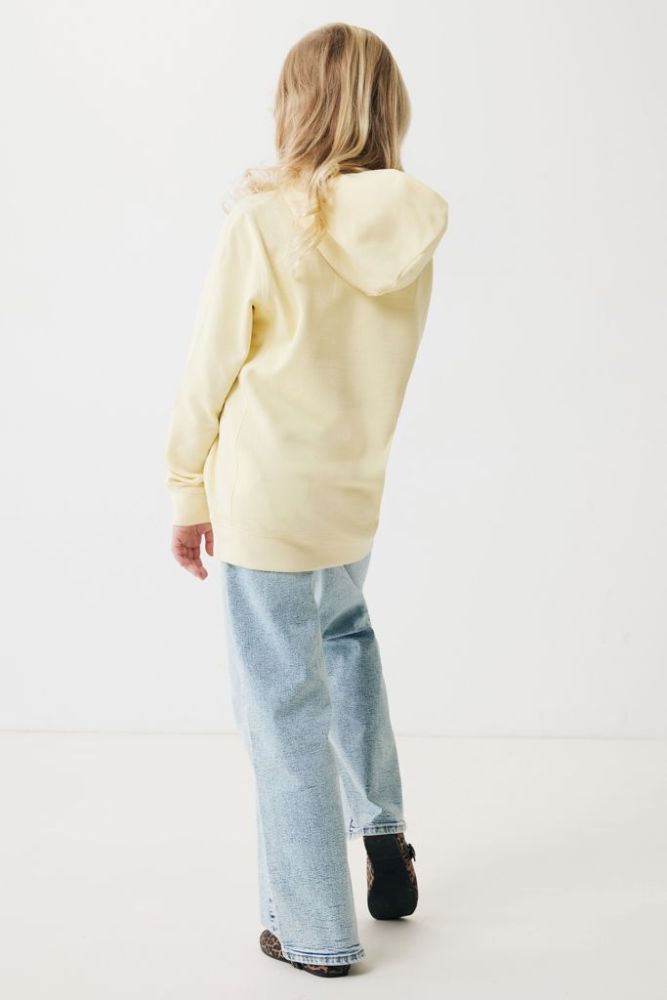 Detská mikina moderného strihu vyrobená zo 100% bavlny, z toho 70% z organickej a 30% z recyklovanej bavlny, 280 G/M². Mikina má bočné vrecká, dvojvrstvovú kapucňu a rebrovanie 1x1 na manžetách a spodnom leme. Vnútorná strana je z mäkkého brúseného fleecu pre väčšie pohodlie. Obsah recyklovaných a organických materiálov je garantovaný vďaka využitiu špeciálnej technológie AWARE™, ktorá kombinuje možnosť skenovania materiálu a technológiu blockchain. Každý produkt Iqoniq vlastní unikátny štítok s QR kódom, ktorý odkazuje na príslušný digitálny pas produktu. 2% z výťažku každého predaného kusu je darovaných na Water.org. Certifikované OEKO-TEX® STANDARD 100 2303045 Centexbel. Povaha recyklovaného materiálu môže mať vplyv na farebnosť alebo výskyt nečistôt v textile.