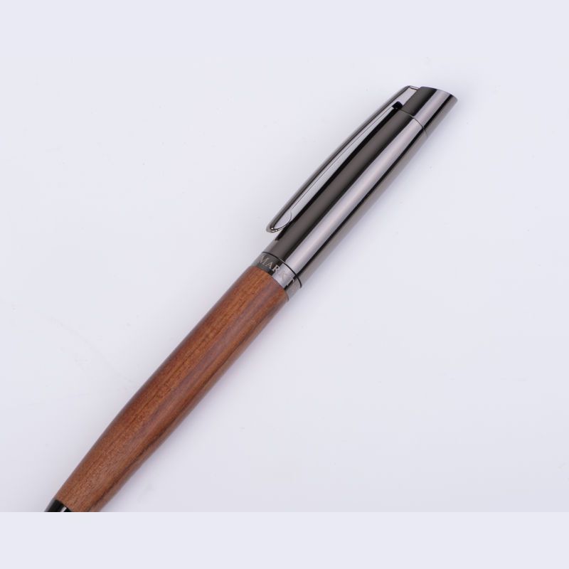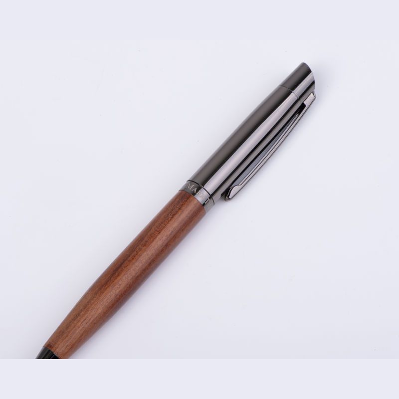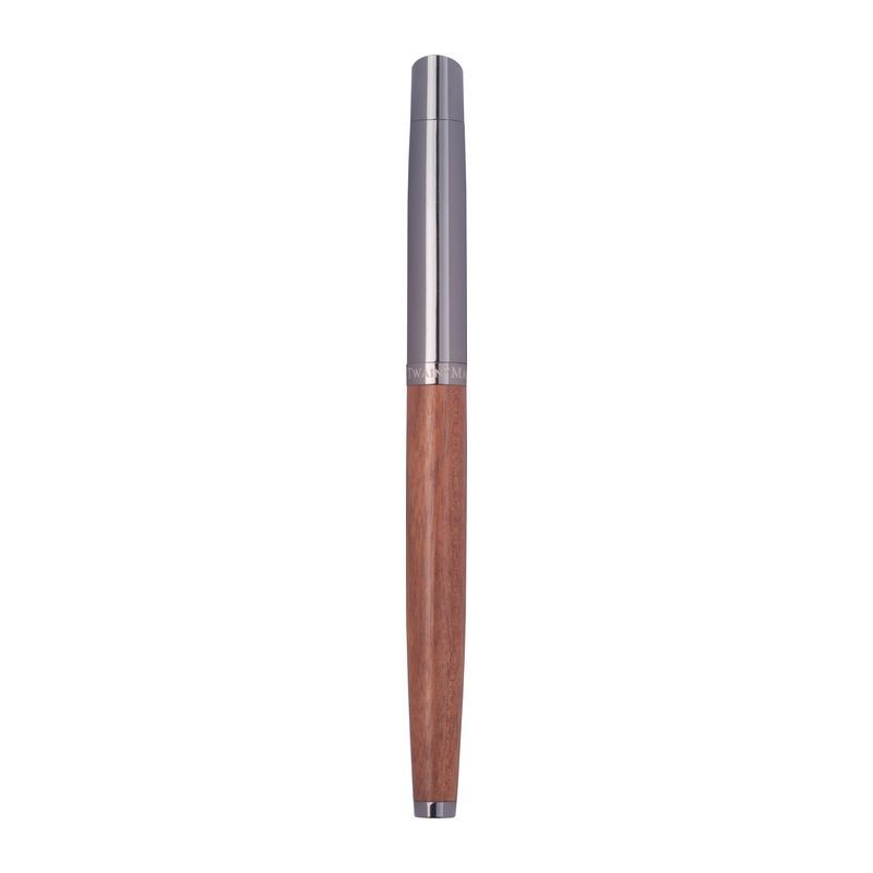Písacia sada Mark Twain vyrobená z nehrdzavejúcej ocele a dreva. Guľôčkové pero s modrým atramentom, dĺžka písania 1200 m; roller s modrým atramentom, dĺžka písania 400 m.