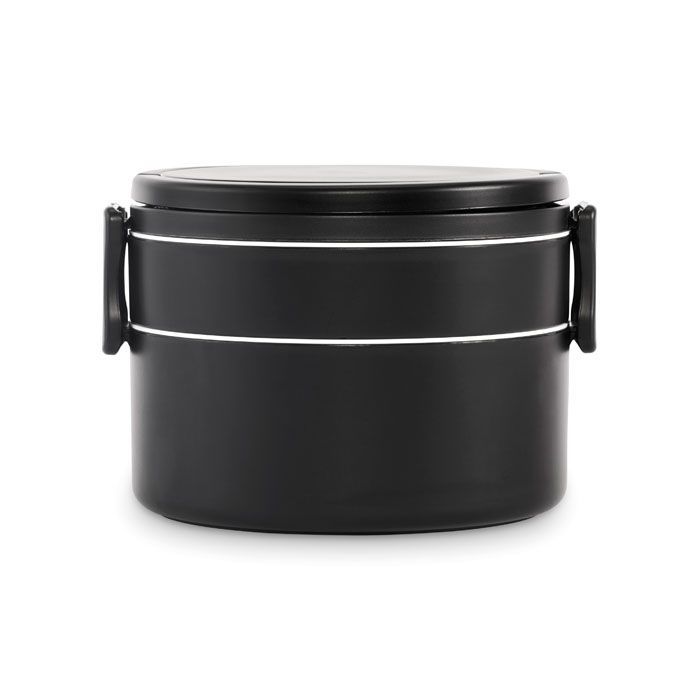 Dvoupatrový kulatý box na oběd nebo svačinu z PP s bočním zavíráním pomocí klipů. Včetně vnitřních vložek. Objem 250 ml (horní) a 700 ml (dolní).