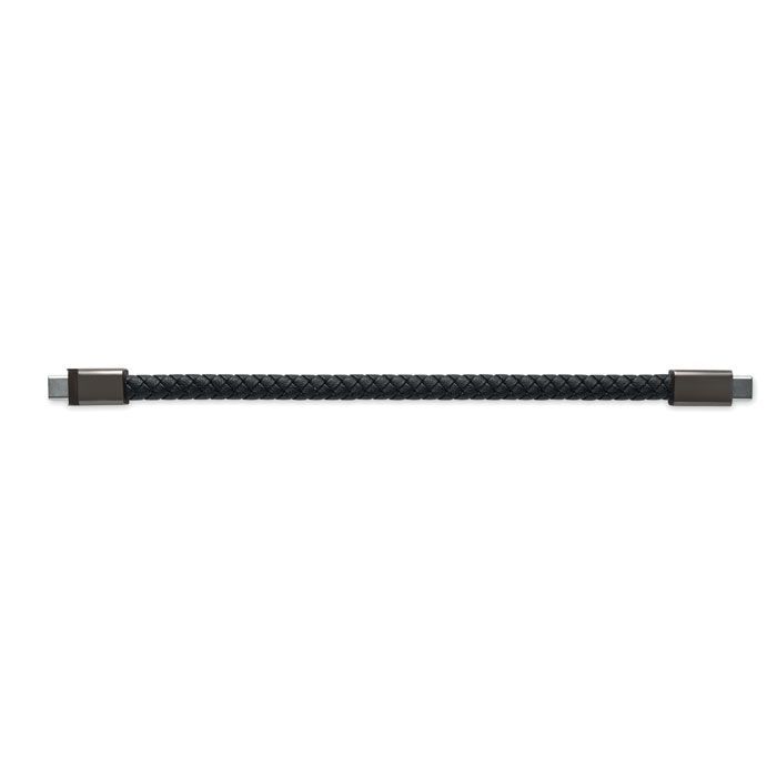 Náramek jako 60W kabel pro nabíjení a přenos dat type-C na type-C. Vyrobeno ze slitiny zinku z PU opletením. Obvod zápěstí cca 21 cm.