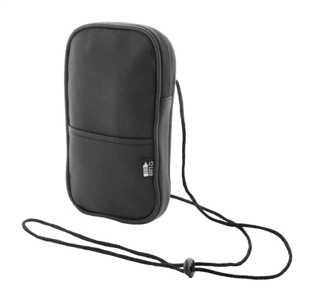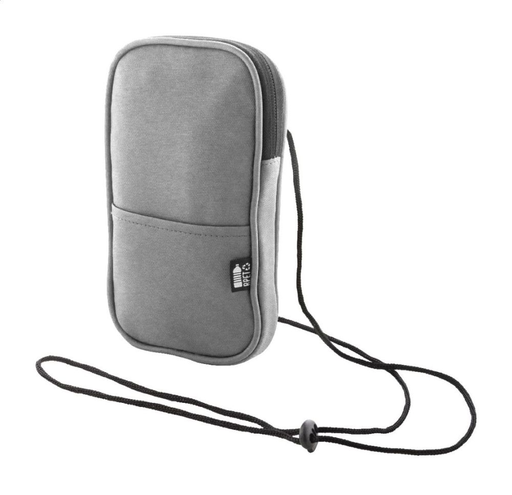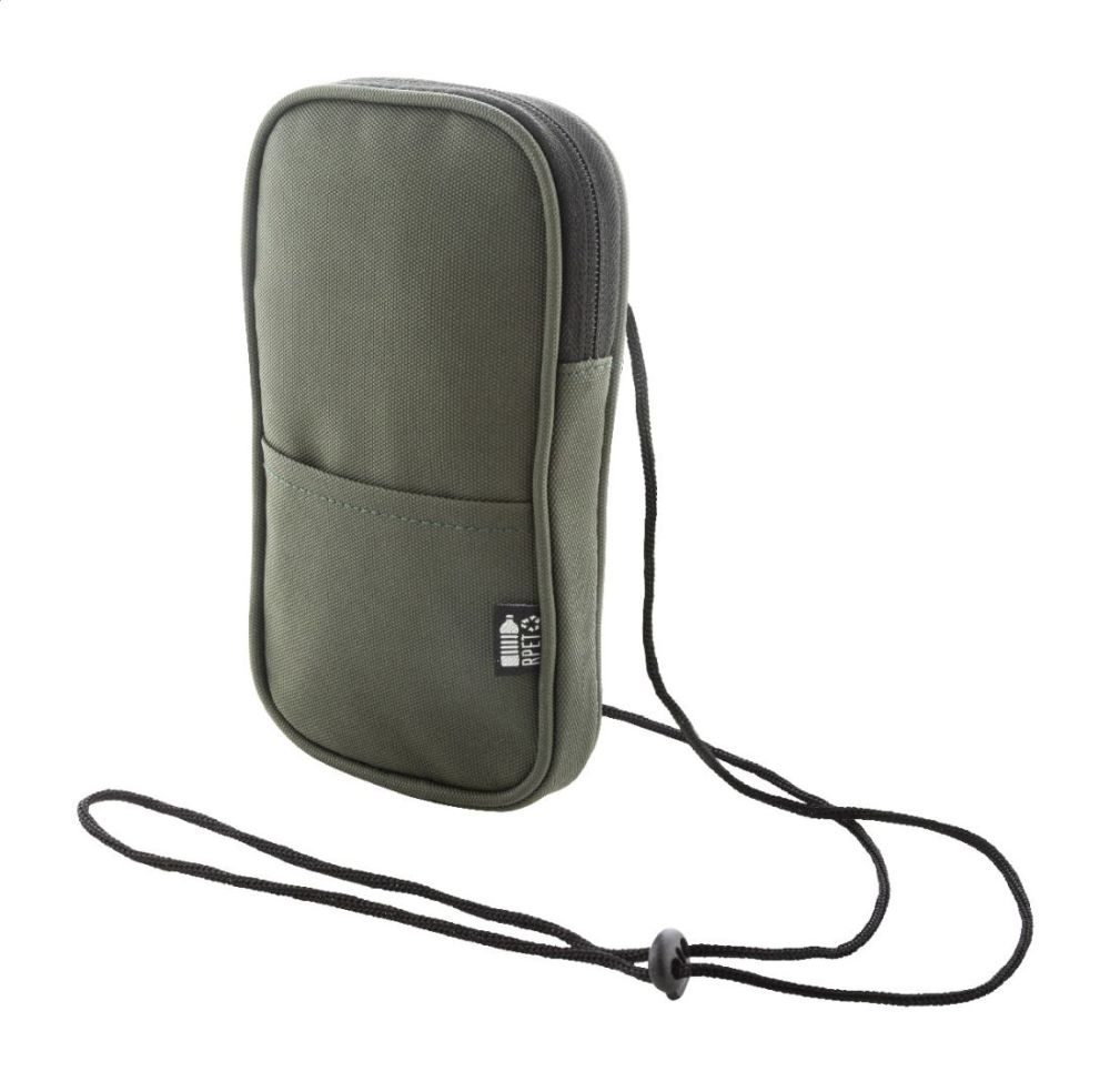 Vodeodolná RPET crossbody taška na mobilný telefón s hlavnou priehradkou na zips, predným vreckom a nastaviteľnou šnúrkou. Polyester RPET 600D potiahnutý PU, s výrazným štítkom RPET.