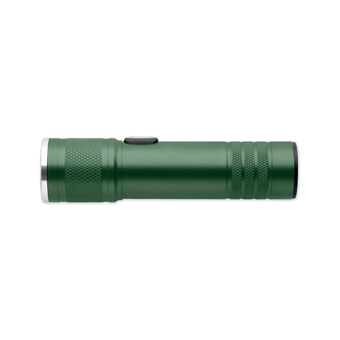 Dobíjecí COB svítilna z recyklovaného hliníku. 100 lumenů, 3 světelné módy a funkce zoom. Vestavěná dobíjecí baterie s kapacitou 800 mAh. Nabíjecí kabel je součástí dodávky.