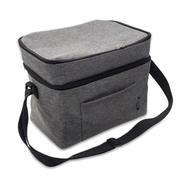 Termotaška vyrobená z materiálu RPET 600D se dvěma přihrádkami na zip. Vnitřní materiál PEVA zajišťuje, že jídlo a nápoje jsou udržovány při konstantní teplotě. Taška má nastavitelný ramenní popruh a vnější boční kapsu.
