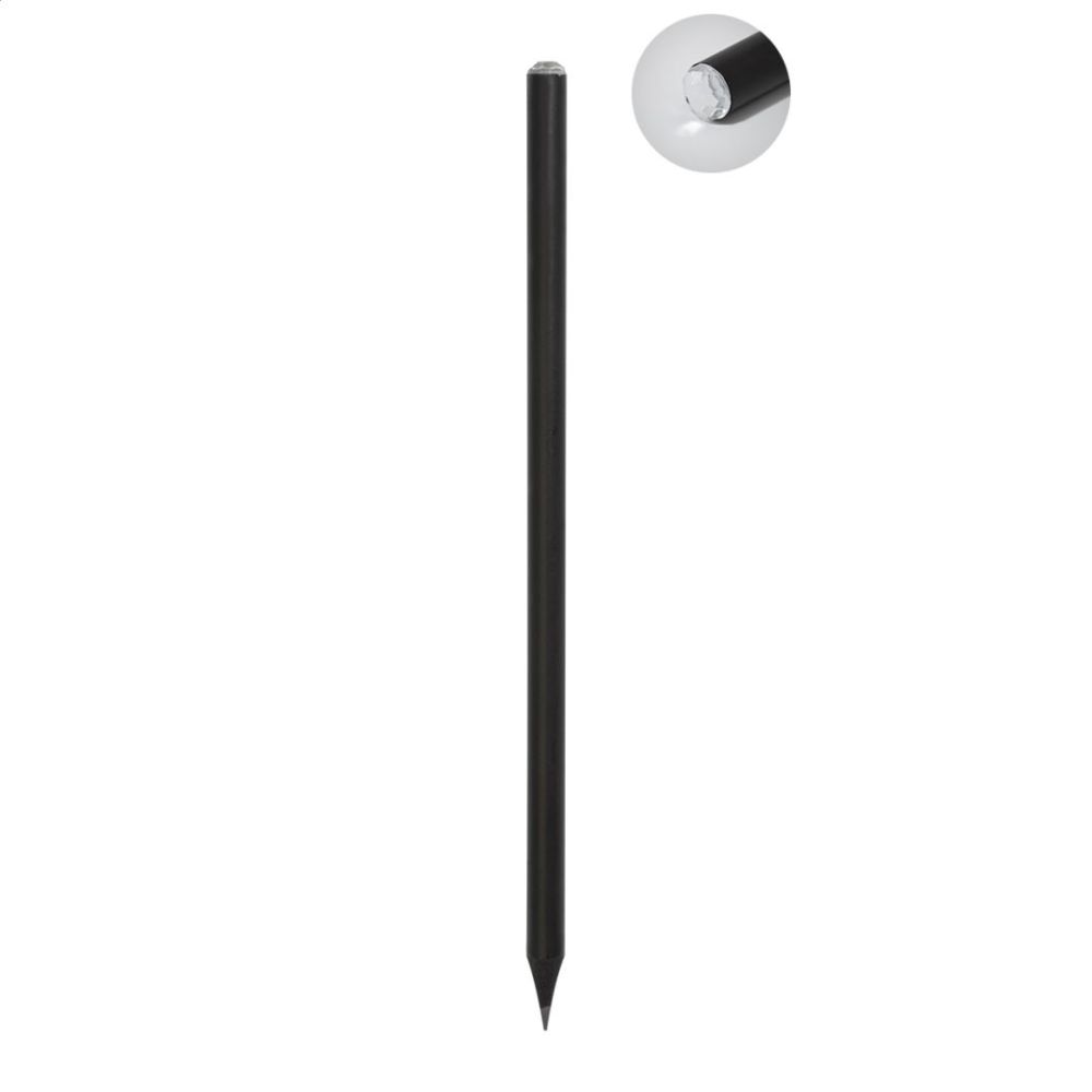Čierna drevená ceruzka s akrylovými ozdobnými kamienkami. Orezaná, trieda HB.