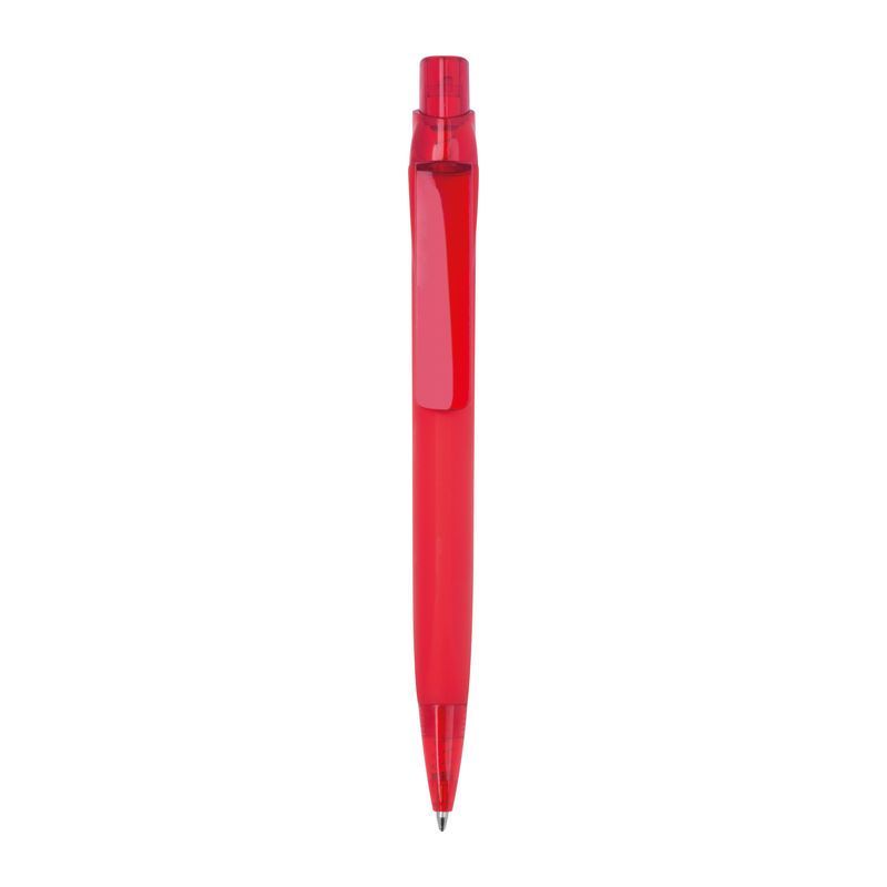 Pogumované plastové guľôčkové pero s veľkokapacitnou modrou náplňou (dĺžka písania cca 800 m).