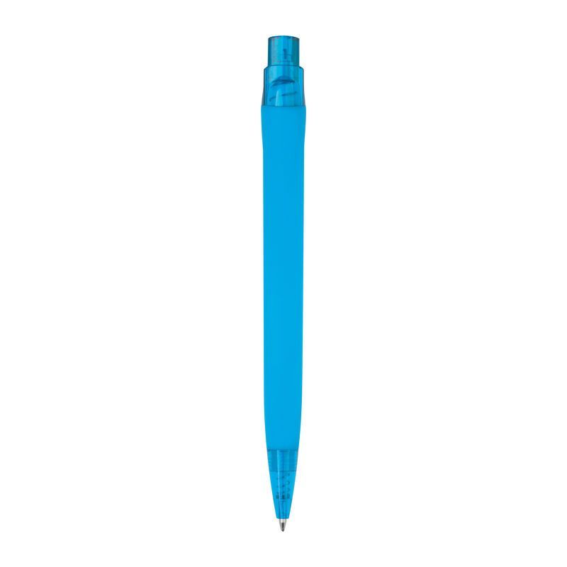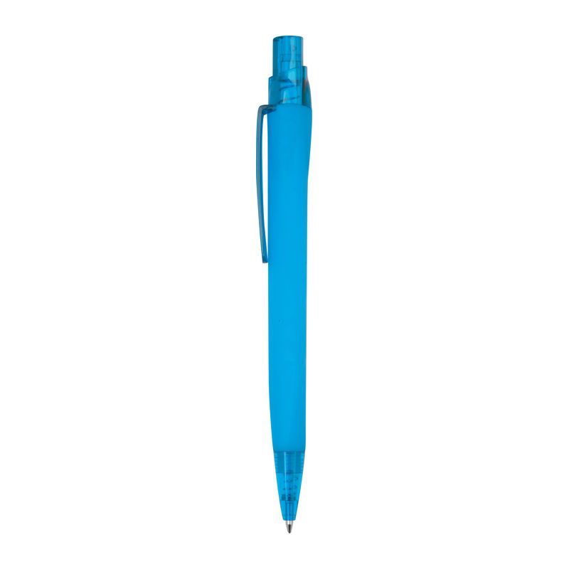 Pogumované plastové guľôčkové pero s veľkokapacitnou modrou náplňou (dĺžka písania cca 800 m).