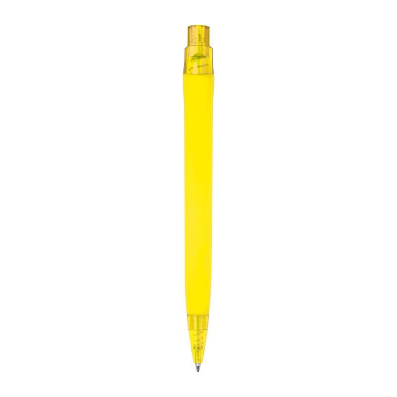 Pogumované plastové guľôčkové pero s veľkokapacitnou modrou náplňou (dĺžka písania cca 800 m).