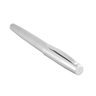 The Cerruti 1881 chrome roller pen is defined by luxurious minimalism, featuring a smooth cap engraved with the new two-row Cerruti 1881 logo, contrasted by a pinstripe-engraved lower barrel. Its crisp, luminous chrome finish enhances the fluidity of the writing experience with a clean, timeless elegance.