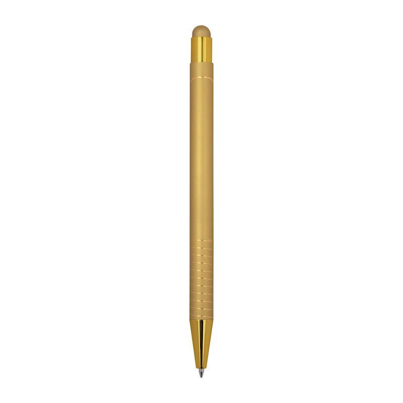 Guľôčkové pero s integrovaným stylusom pre smartfóny a tablety. Lesklý farebný zrkadlový povrch, modrá náplň