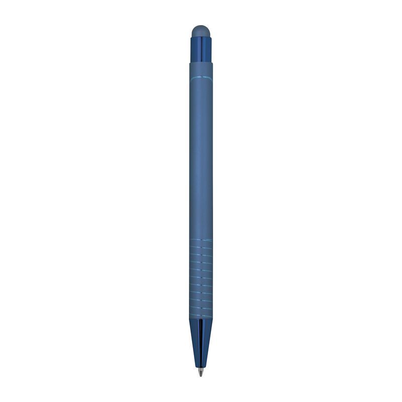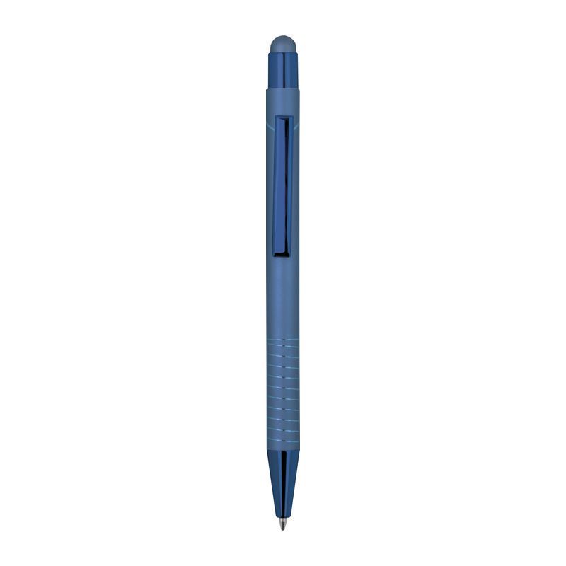 Guľôčkové pero s integrovaným stylusom pre smartfóny a tablety. Lesklý farebný zrkadlový povrch, modrá náplň