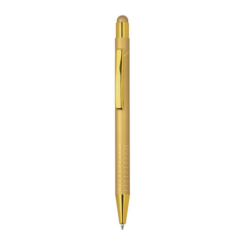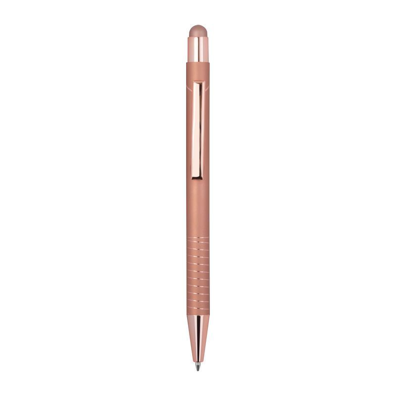 Guľôčkové pero s integrovaným stylusom pre smartfóny a tablety. Lesklý farebný zrkadlový povrch, modrá náplň
