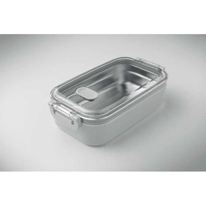 Obědový box z PP s přídavným zásobníkem z recykl. nerez. oceli. Vzduchotěsné AS víčko, které udrží potraviny čerstvé a bezpečné zavřené. Objem 750ml bez zásobníku a 650ml se zásobníkem.
