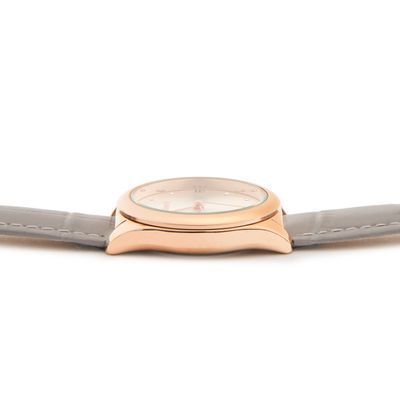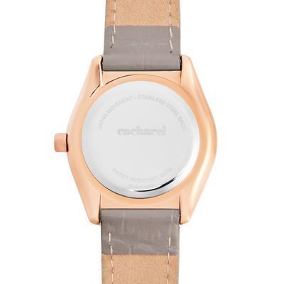 The “Violette” watch in grey and rosegold is the ultimate statement of elegance. Featuring a crocco-printed leather bracelet, a rosegold case, and refined rosegold metal accents, this watch exudes timeless luxury. The sunray dial catches the light with every movement, elevating its refined design. This classic timepiece pairs effortlessly with other accessories from the collection, adding a soft, sophisticated touch to any look.