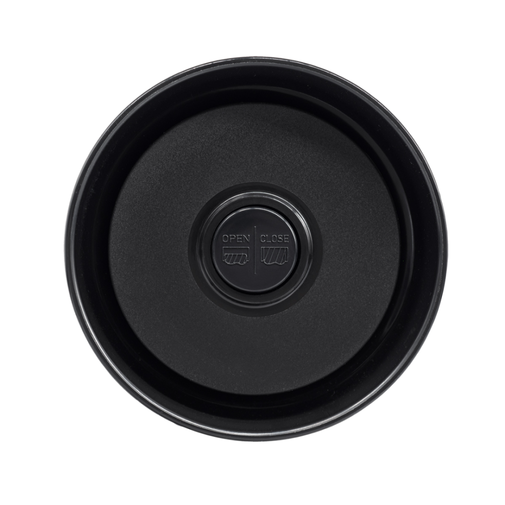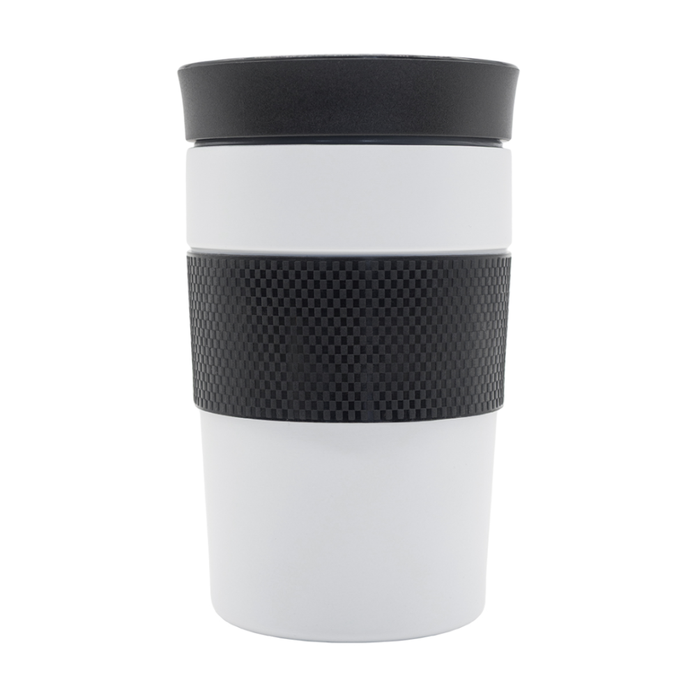 Termohrnek o objemu 320 ml s dvojitou stěnou z nerezové oceli, vnitřní stěnou z vylepšené oceli 18/8 a tlačítkovým uzávěrem, neprotékavý. Speciální 360° náústek umožňuje pití ze všech stran. Dno hrnku vyrobeno z voděodolné termoplastické gumy (TPR). Termoizolační schopnost 12 h. Jen ruční mytí.