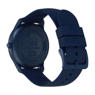 Go green and do your bit for the planet with the new ICE solar power Blue sunset watch. The solar-powered timepiece is ultra slim and feather light. With its strap made from super soft silicone, this model is the ultimate minimalist statement. Simply expose it to natural or artificial light to charge, then sit back and enjoy as it lasts and lasts! It comes in a reusable felt pouch made from recycled plastic bottles.