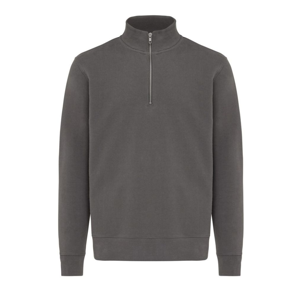 IQONIQ Elgon sveter s krátkym zipsom z recyklovanej bavlny antracitová
