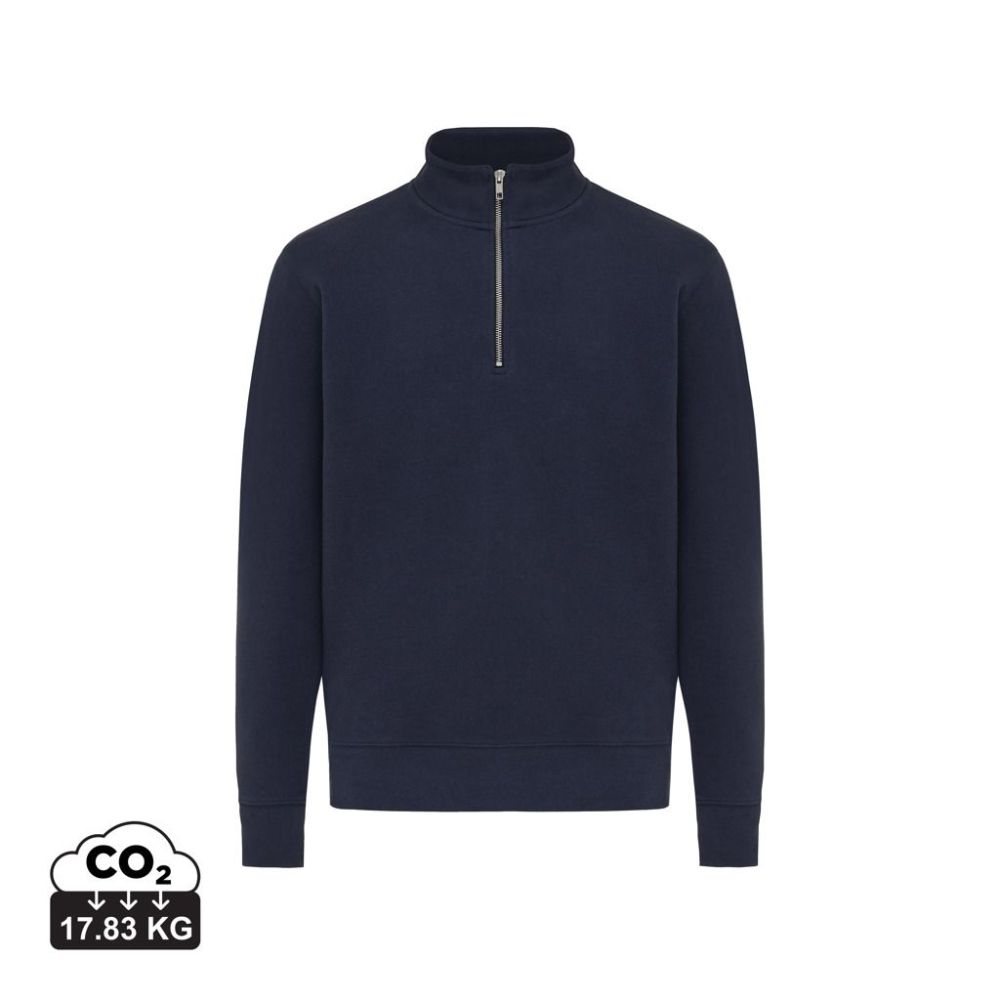 IQONIQ Elgon sveter s krátkym zipsom z recyklovanej bavlny námornícka modrá