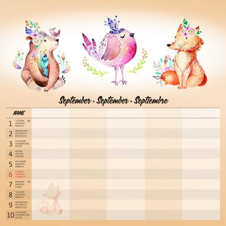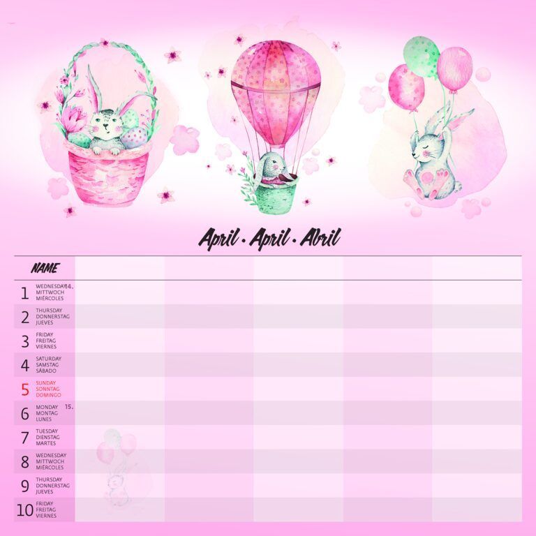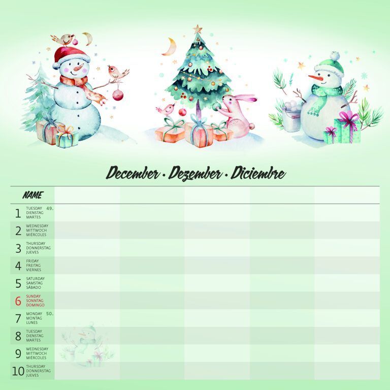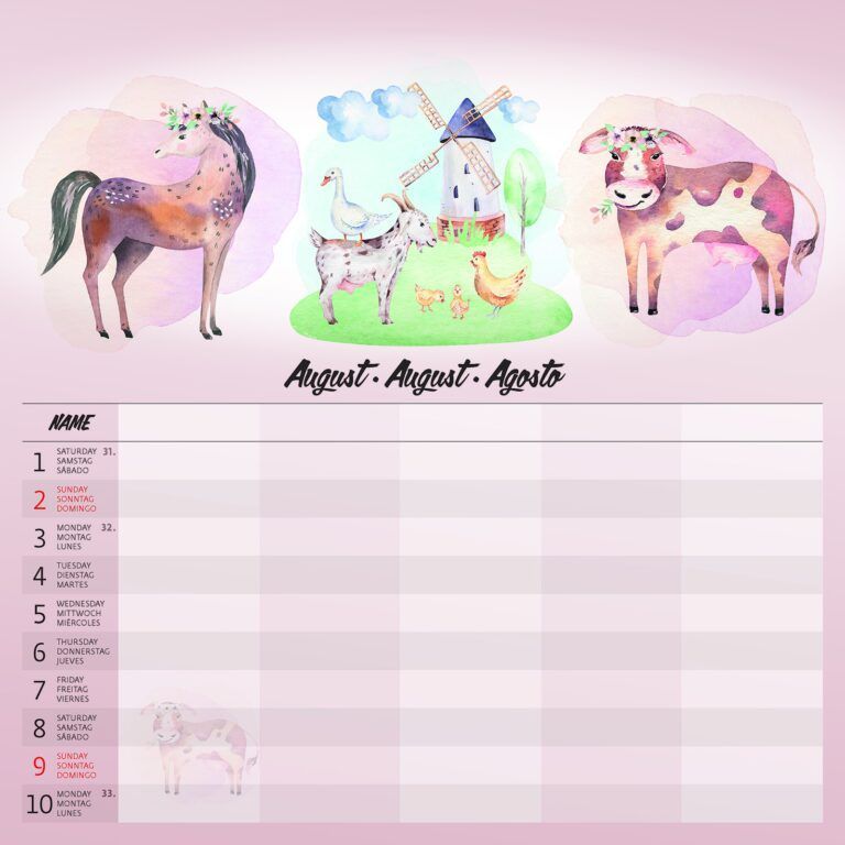 Kalendárium v šiestich jazykoch (GB, D, F, I, NL, DK)