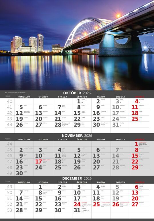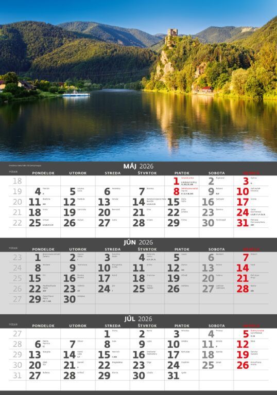 Kalendárium: slovenské trojmesačné so sviatkami európskych štátov (CZ / SK / A / B / D / F / H / CH / I / PL / RUS / UKR)