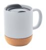 Vysoko kvalitný keramický hrnček s prírodným korkom a PP plastovým viečkom na pitie. S matnou vonkajšou a lesklou vnútornou povrchovou úpravou. 325 ml. V kraftovej papierovej krabici.