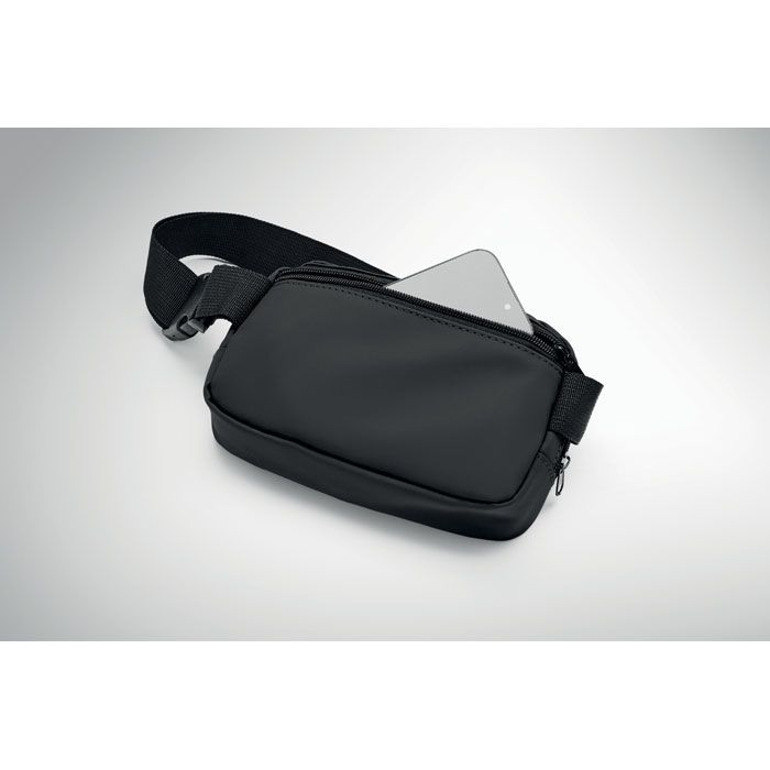 Ledvinka nebo crossbody taštička z měkkého PU s podšívkou z 210D RPET polyesteru. Jedna hlavní kapsa na zip, jedna zadní kapsa na zip a vnitřní síťovaná přihrádka.