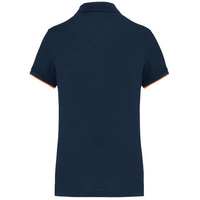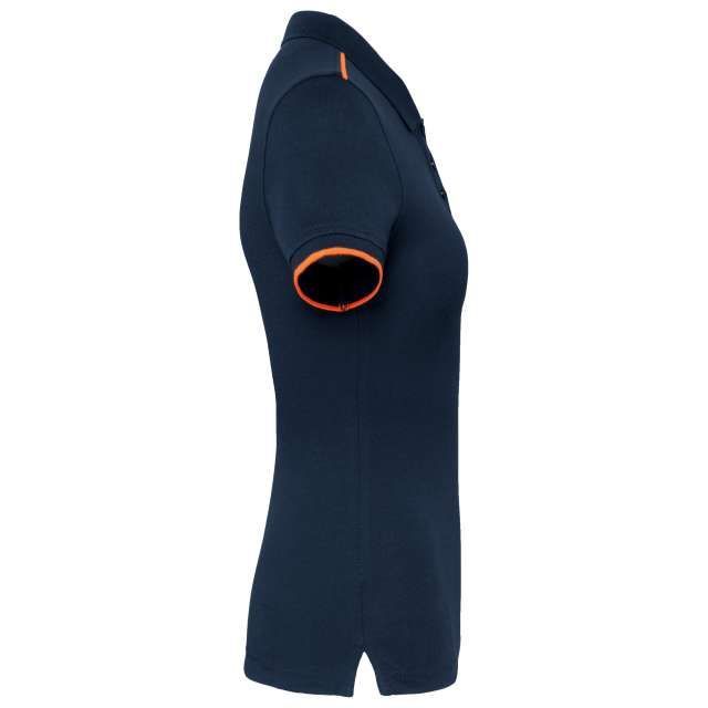 LADIES' SHORT-SLEEVED CONTRASTING DAYTODAY POLO SHIRT Navy/Fluorescent Orange M