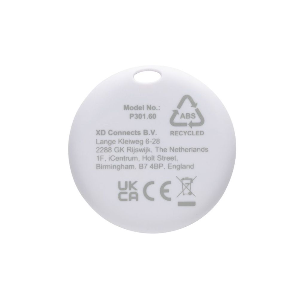 Vyhľadávač predmetov z ABS, vďaka ktorému budete mať prehľad o svojich veciach bez ohľadu na to, kde sa nachádzate. Pripevnite vyhľadávač predmetov k peňaženke, kľúču alebo ho priložte k taške, batožine alebo dokonca svojmu miláčikovi, aby ste ho ľahko našli pomocou aplikácie Apple Find My App. Kompatibilný so všetkými zariadeniami Apple (iphone, ipad, iwatch, MAC). Režime straty vás upozorní, keď opúšťate svoje veci. Životnosť batérie až 1 rok, potom je možné vymeniť. RCS certifikácia zaisťuje garanciu použitia recyklovaného materiálu vďaka transparentnému prehľadu nad dodávateľským reťazcom. Celkový podiel recyklátu podľa váhy produktu: 50 %. Balené v papierovom obale.