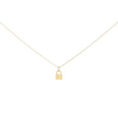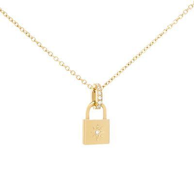 The “Violette” necklace in gold is both delicate and right on trend. It features a striking lock pendant, with the pendant link set with subtle yet luminous crystals. The lock pendant also showcases a subtle star engraving, further complemented by a crystal, adding a modern and distinctive touch. Made of stainless steel, this necklace offers a chic and elegant accent to any outfit.