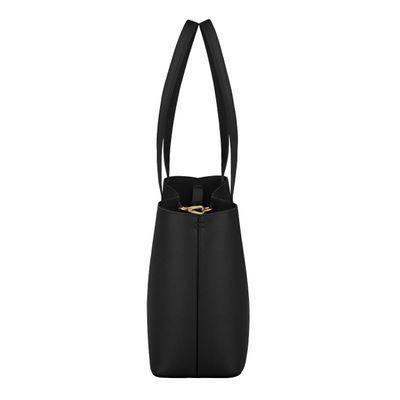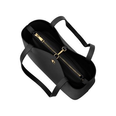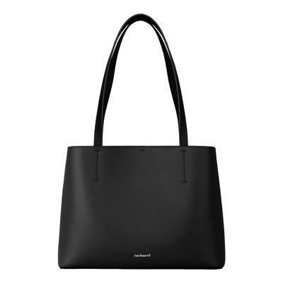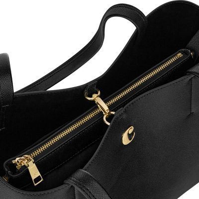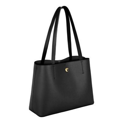 The Seraphine tote bag is a highly functional yet feminine piece, crafted from beautiful saffiano-textured vegan leather (PU) and offered in a playful palette of colors. It is signed with an oversized gold-toned C plate, adding a distinctive Cacharel touch. Designed as a 2-in-1 accessory, its spacious interior includes a large detachable pouch that can be used separately as a travel organizer. The tote closes with an elegant hook-and-ring system, bringing a subtle and unexpected twist to its design. Lightweight, easy to wear, and effortlessly versatile, it complements any outfit. Available in black, navy, taupe, yellow, and light grey.